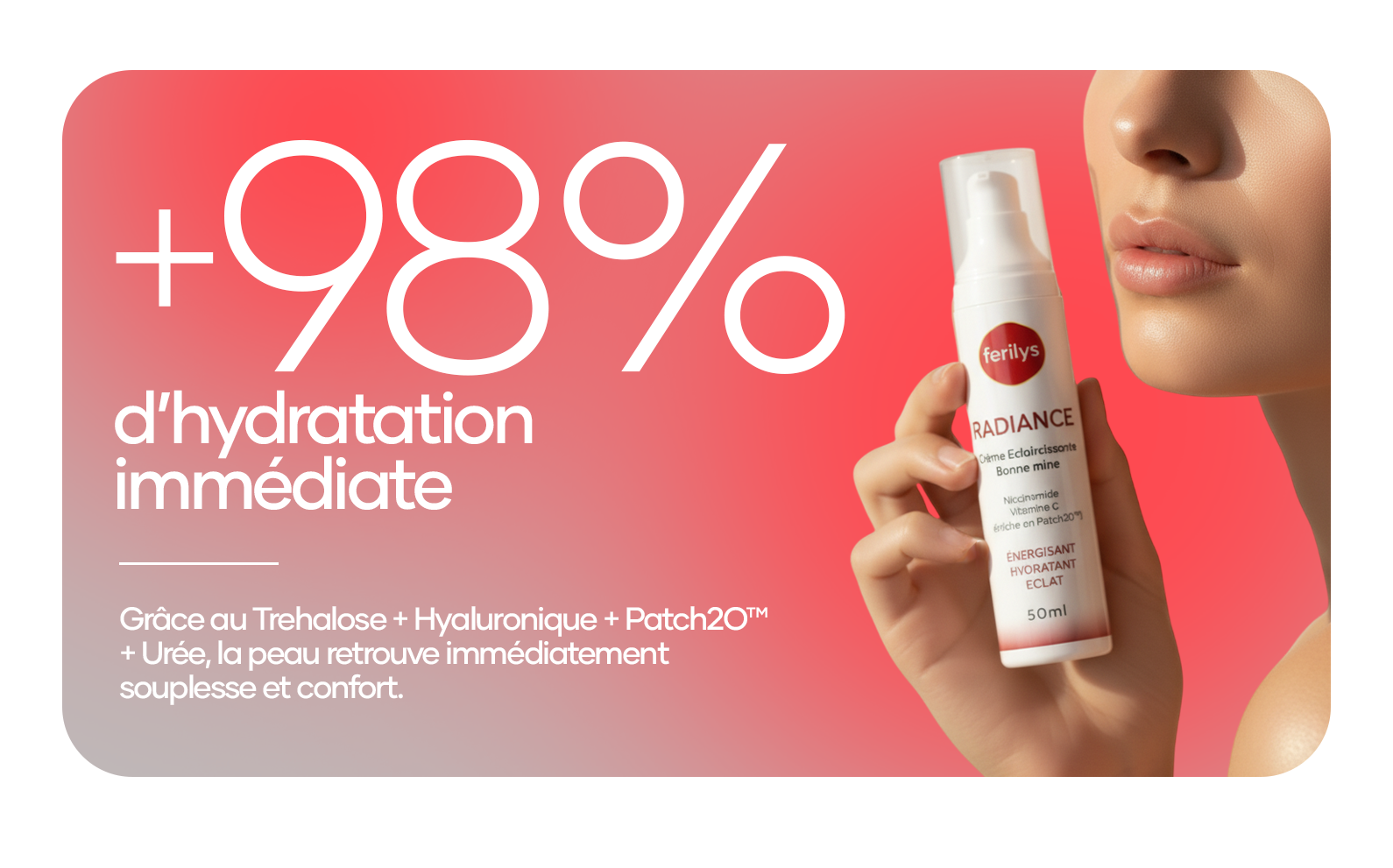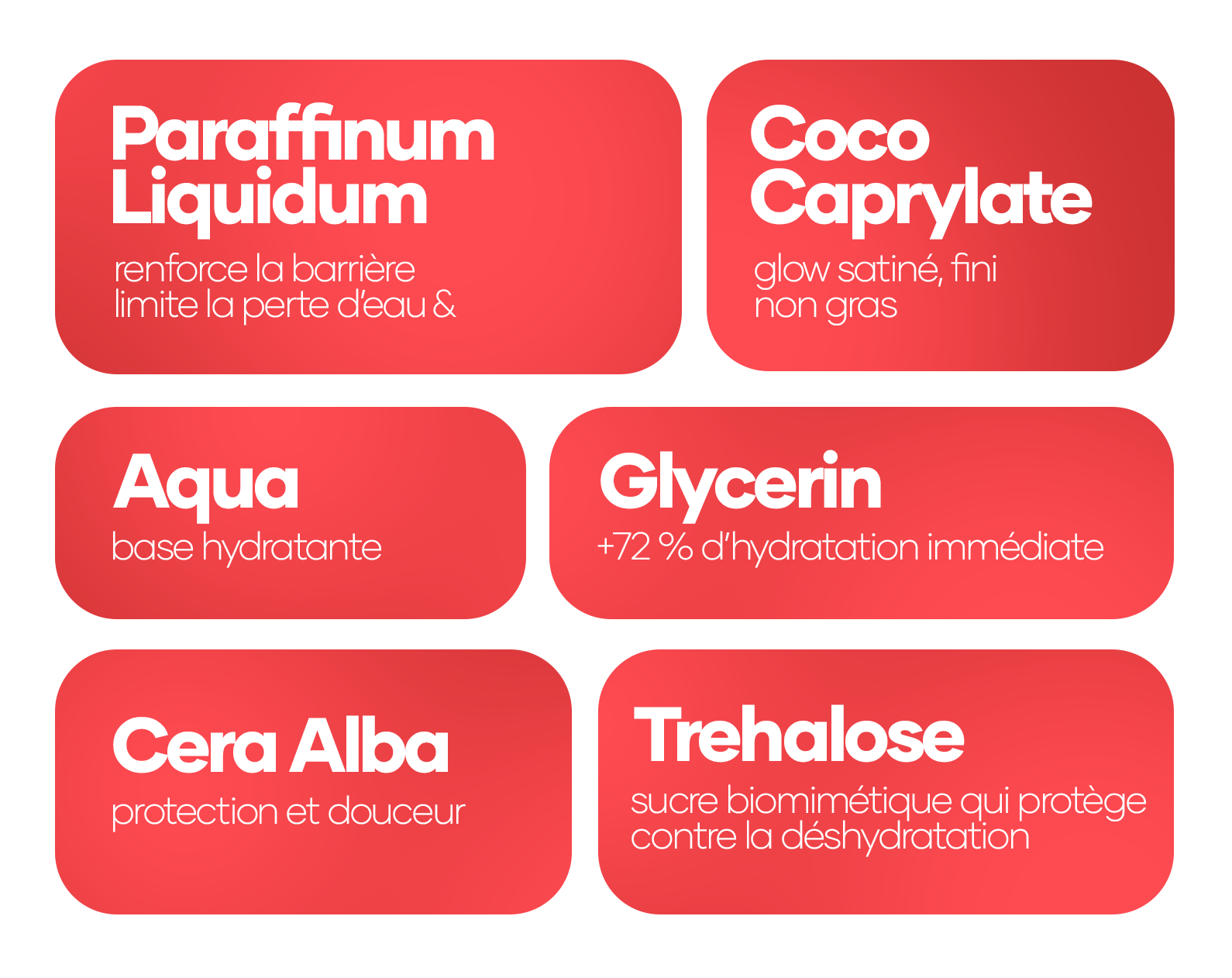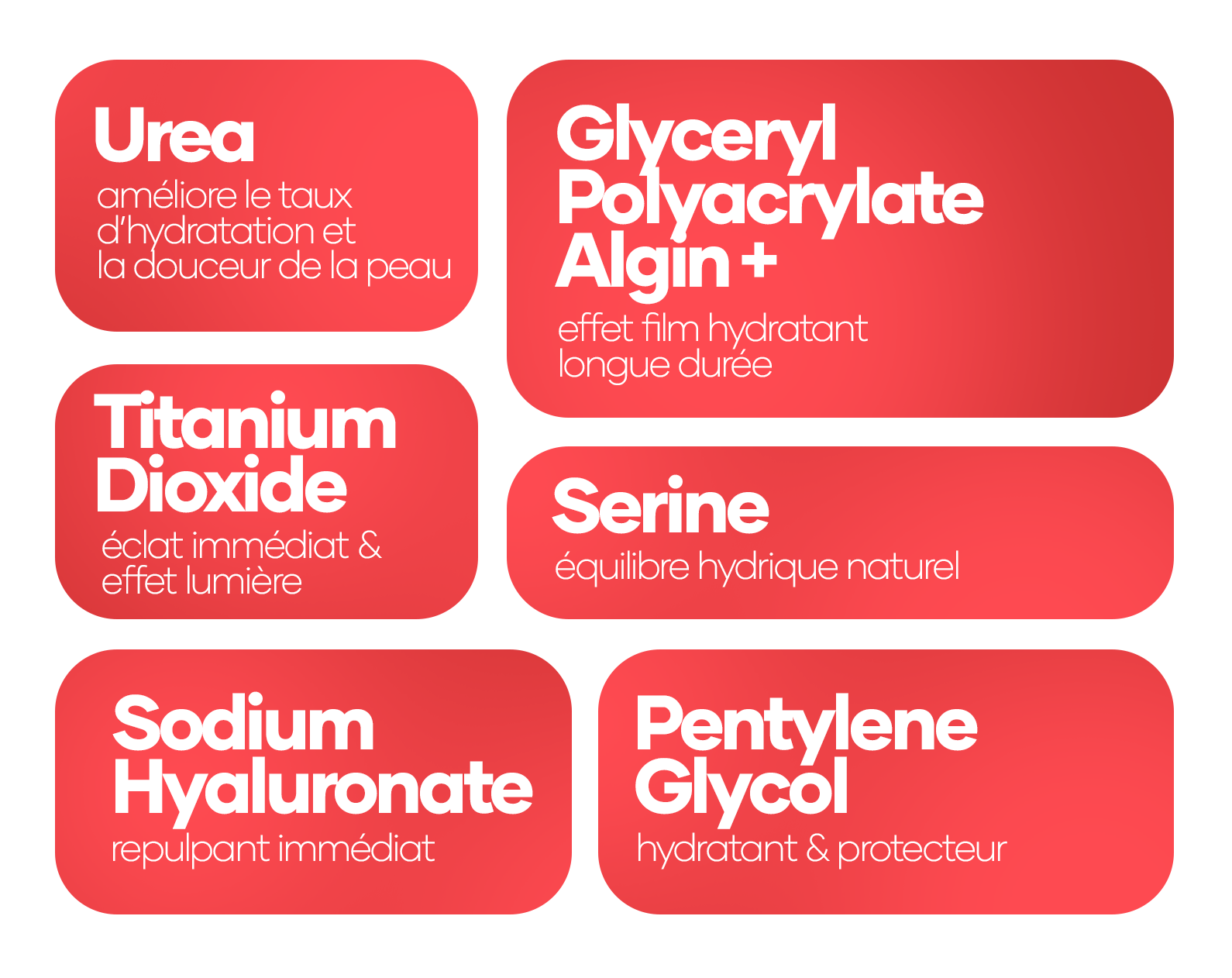 Une crème hydratante illuminatrice mêlant hydratation profonde, repulpant et glow immédiat.