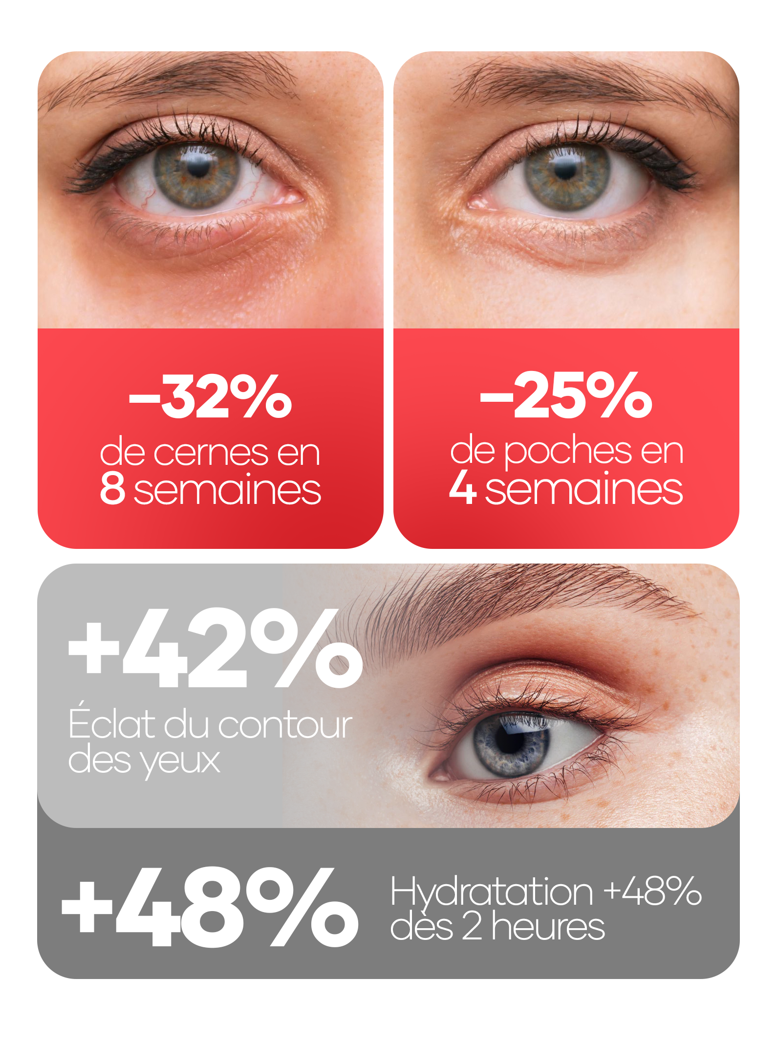 À réduire les poches, les cernes et la déshydratation de la zone fragile du contour des yeux.