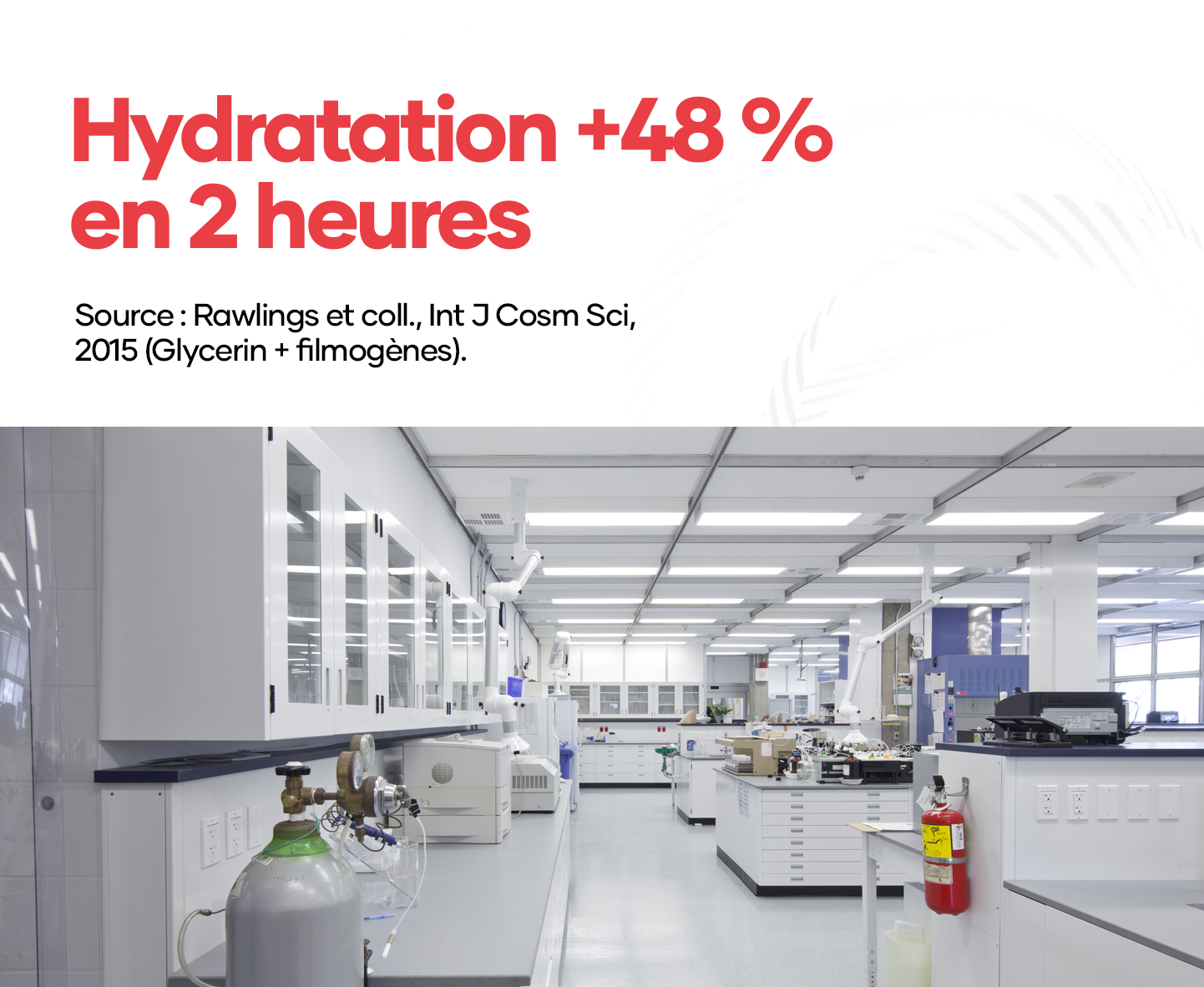 Il diminue l’apparence des rides de déshydratation grâce à l’hydratation + peptides.